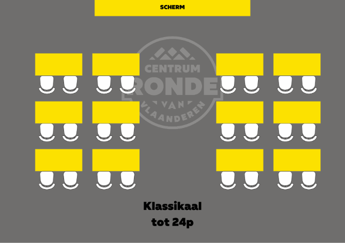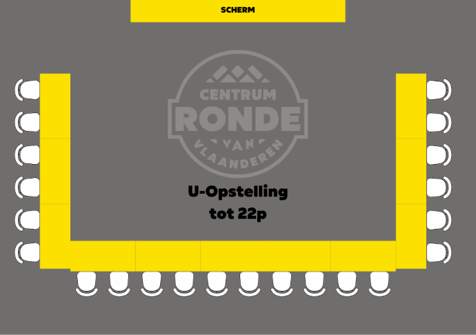 U-opstelling (tot 22 personen) Klassikaal (tot 24 personen) Theater (tot 40 personen) Statafels (tot 40 personen) |