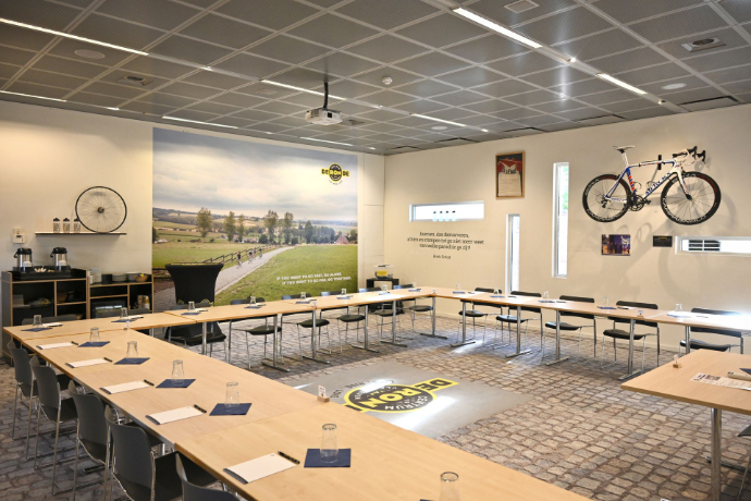 Disposition en U (tot 44 personen) En classe (tot 50 personen) Théâtre (tot 80 personen) Tables hautes (tot 100 personen) |